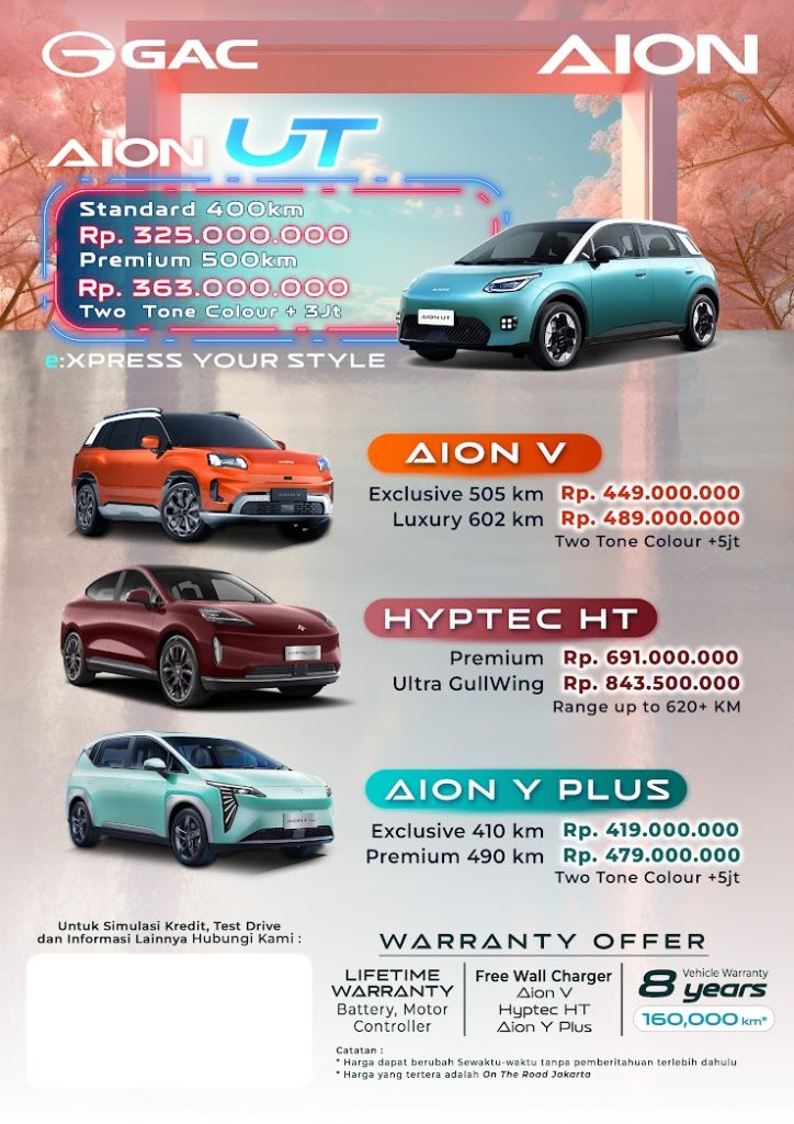 GAC AION Indonesia Memberikan Promo Spesial, Pelayanan Terbaik, DP Murah / Cicilan Ringan / Promo menarik semua ada hanya di GAC AION Indonesia.
