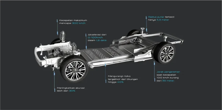 Chassis berteknologi mutakhir yang mampu menjaga keseimbangan kendaraan secara sempurna sehingga meningkatkan keselamatan berkendara.